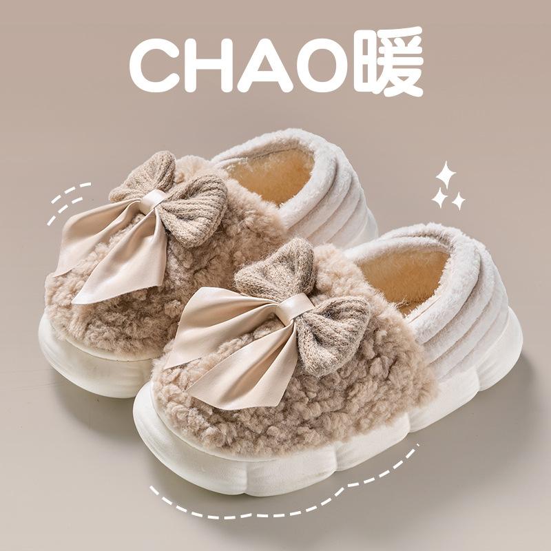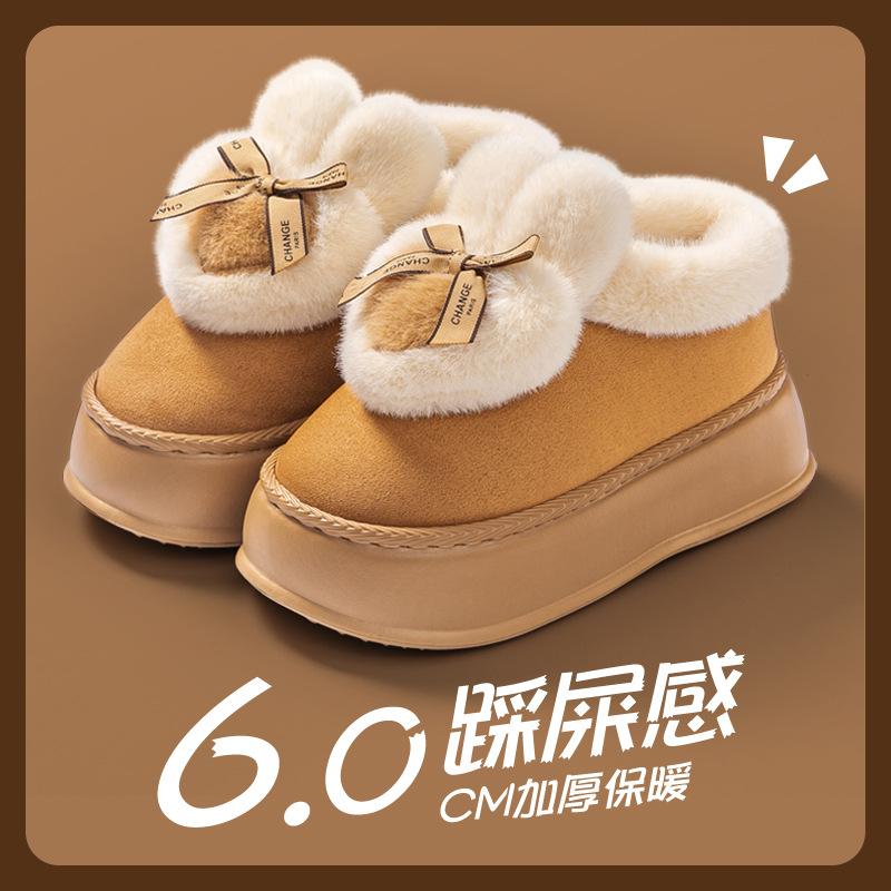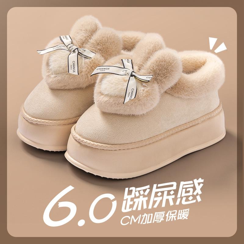 Хлопковые тапочки на толстой подошве с увеличением высоты для женщин, чтобы носить зимой, новая модная теплая и плюшевая хлопковая обувь для женщин