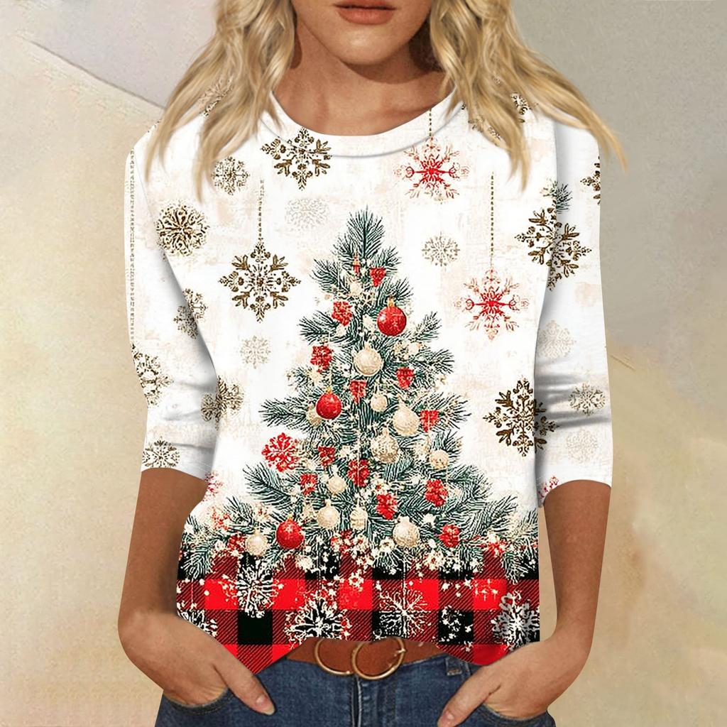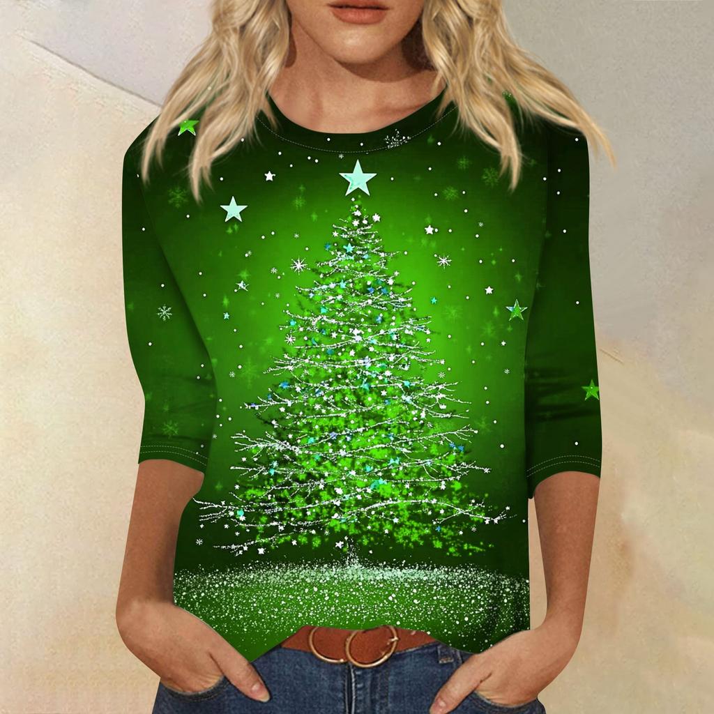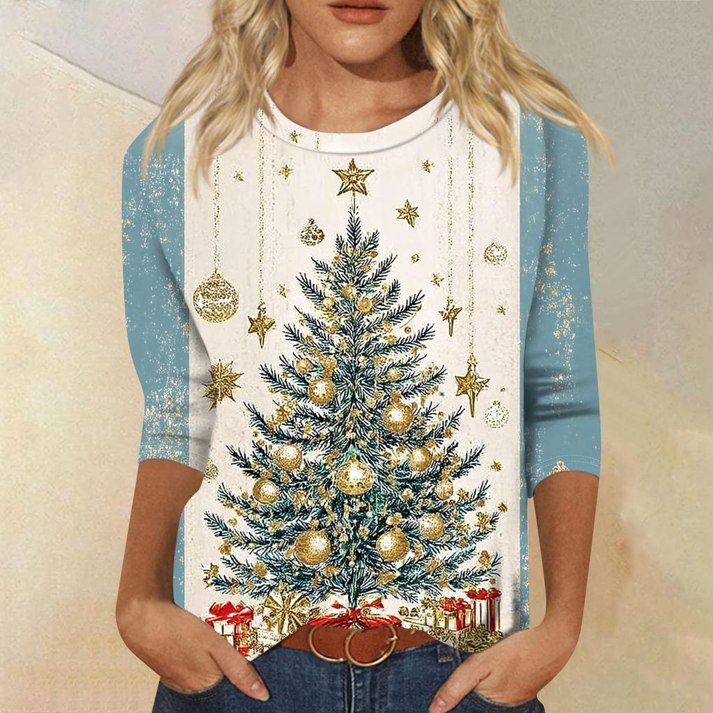 Женская модная повседневная свободная футболка с круглым вырезом и рукавами 3/4 с принтом, женский топ