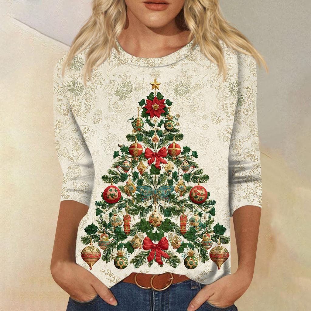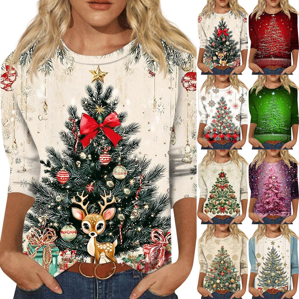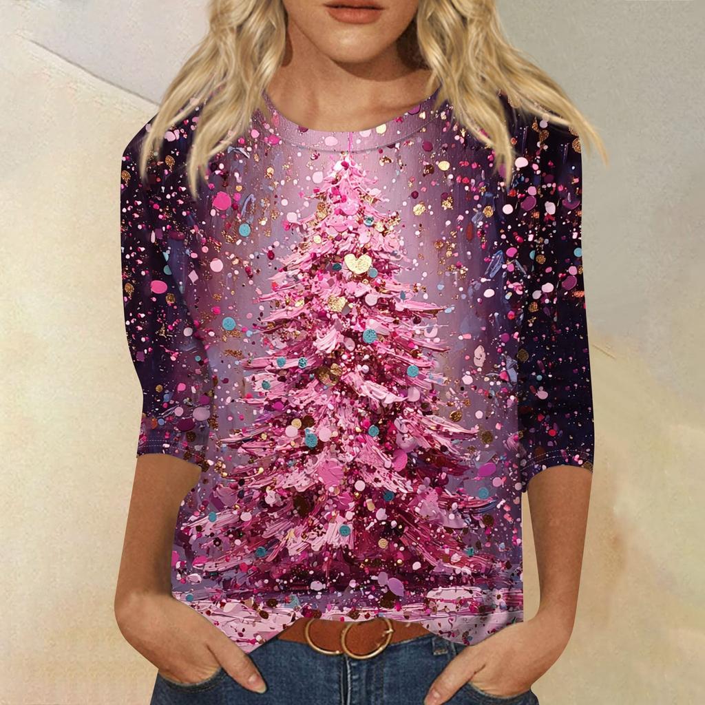 Женская модная повседневная свободная футболка с круглым вырезом и рукавами 3/4 с принтом, женский топ