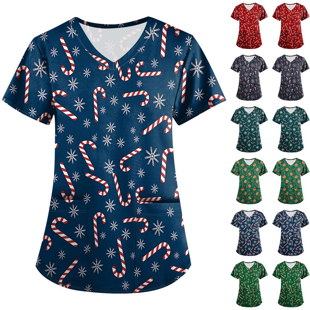 Большой размер Принтованный скраб Рабочая униформа Топы для женских V-образный вырез с запахом Принт Короткий рукав Веселые футболки Рабочая одежда Футболка с карманами — купить товар онлайн с бесплатной доставкой по всему миру!