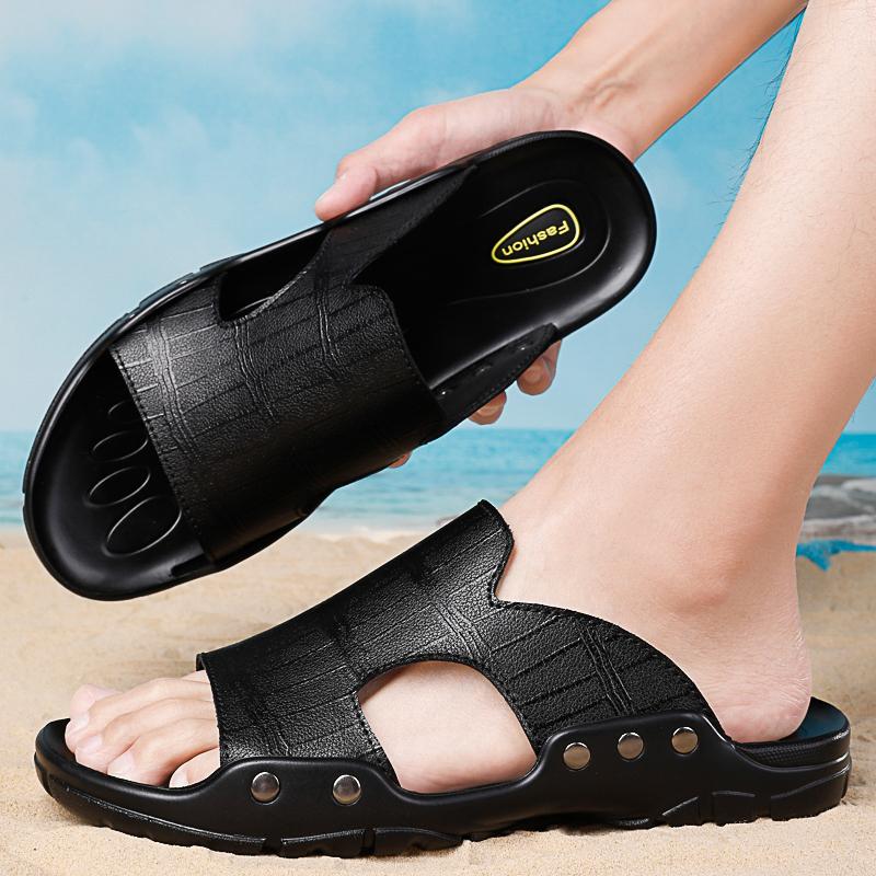Простые повседневные тапочки, мужские тапочки, летние мягкие пляжные туфли с открытым носком, шлепанцы из натуральной кожи, повседневные нескользящие сандалии 38-50 — купить товар онлайн с бесплатной доставкой по всему миру!