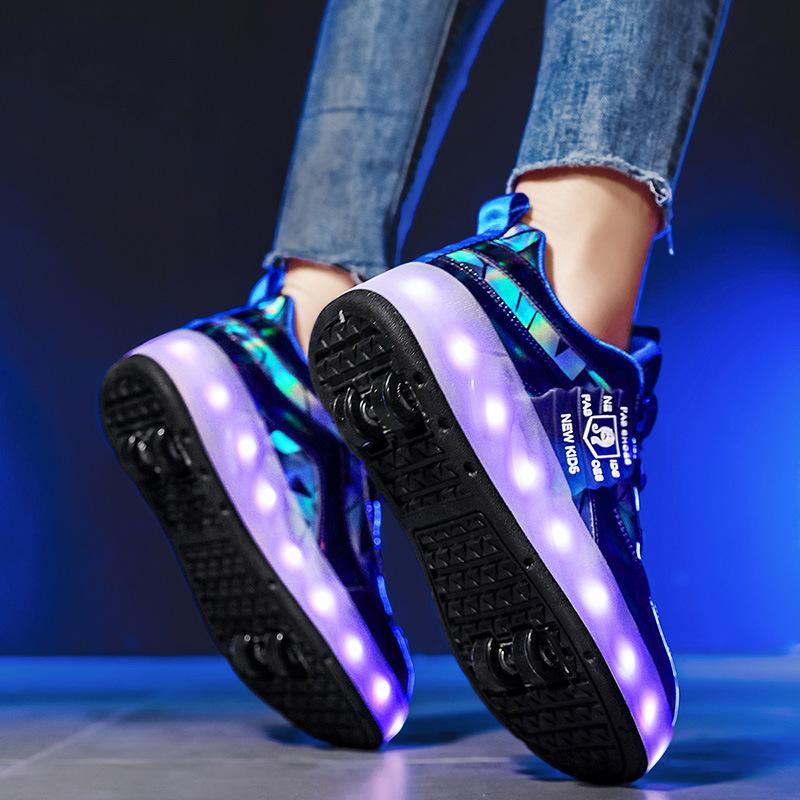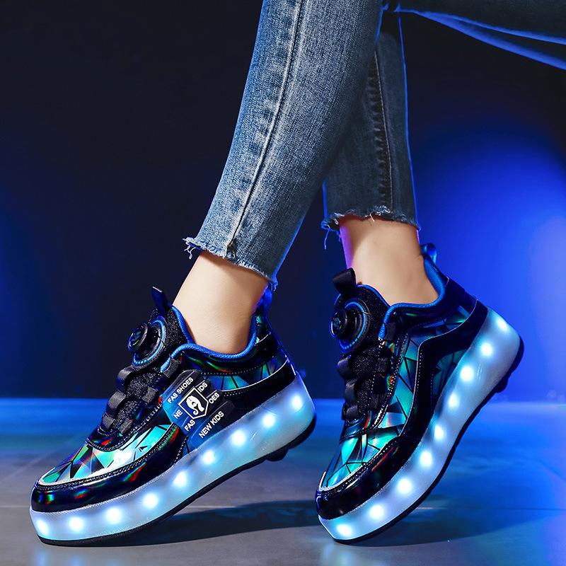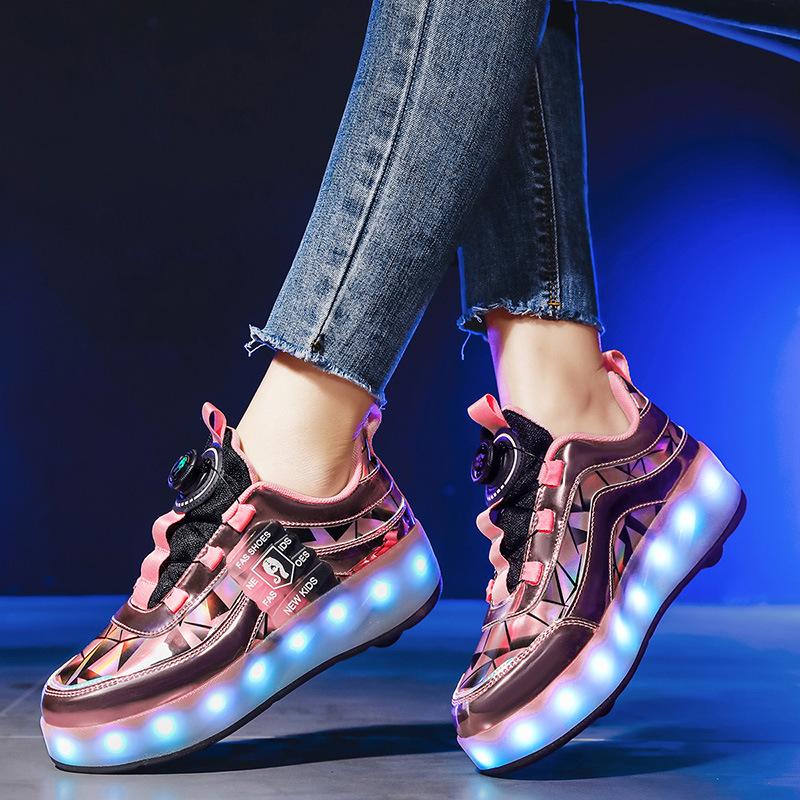 Детские роликовые кроссовки Четырехколесные светящиеся кроссовки со светодиодной подсветкой Раздвижные роликовые кроссовки Спортивные ученические роликовые кроссовки йо