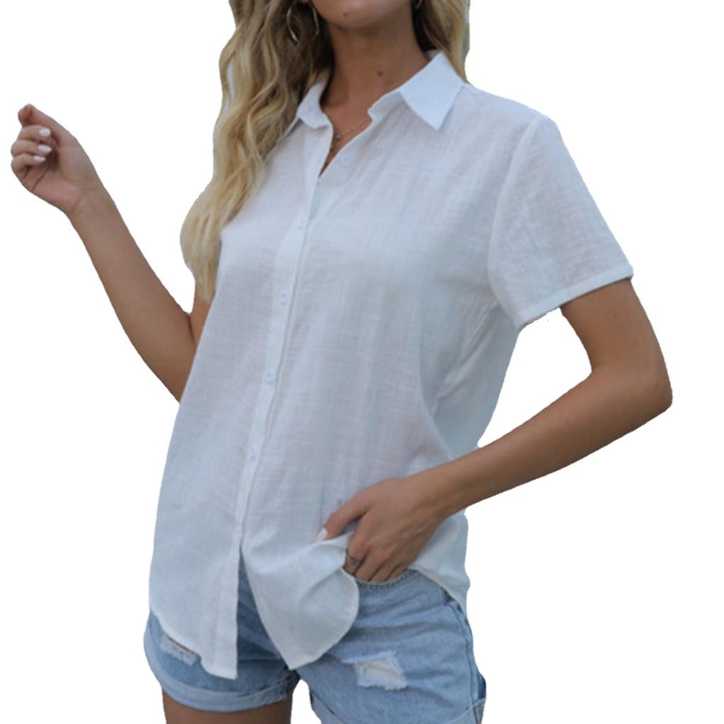 Хлопковые льняные рубашки, весна-лето, белая рубашка, однотонные топы с короткими рукавами, женская свободная блузка на пуговицах
