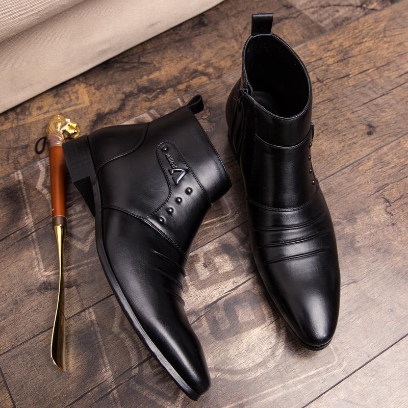 Мужские высокие ботинки из искусственной кожи корейские осенние остроносые британские ботинки Bullock, короткие ботинки для парикмахеров, кожаные ботинки для мужчин