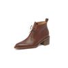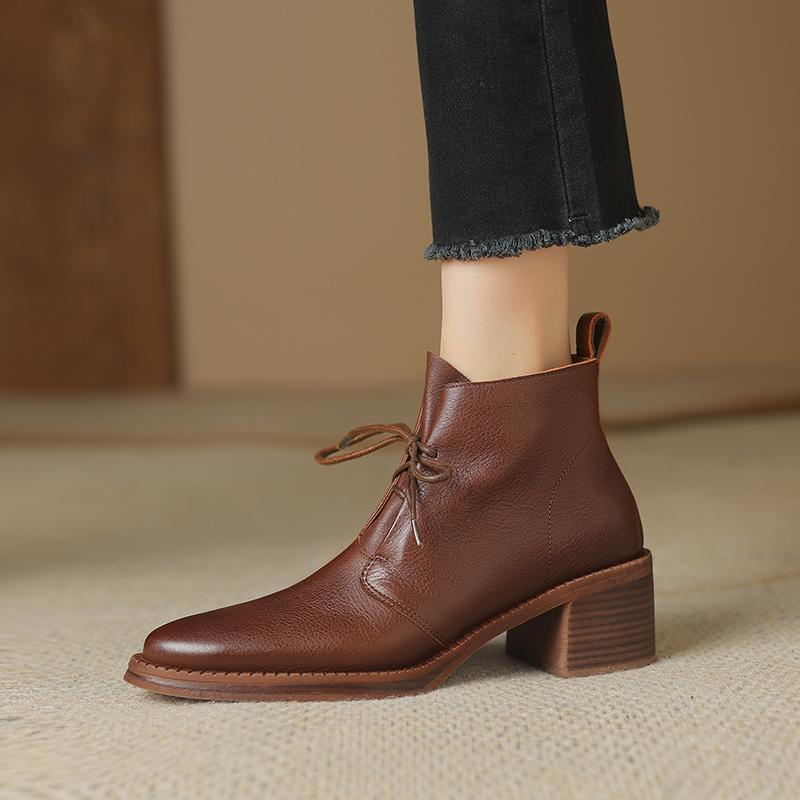 Женские ботинки на шнуровке 2024 года, натуральная кожаная обувь для женщин, с острым носком, на массивном высоком каблуке, в стиле вестерн, черные ковбойские сапоги — купить товар онлайн с бесплатной доставкой по всему миру!