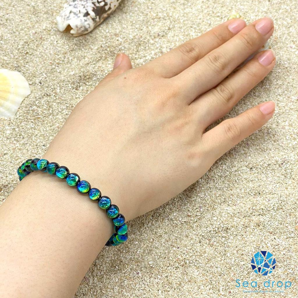[Браслет из стекла «Морская капля»] Щедро изготовлен из драгоценных стеклянных бусин, которые могут быть изготовлены только опытными мастерами. Светлячковое стекло, которое излучает красивое и загадочное свечение, изготавливается по особой технике, сочетающей серебряную фольгу и стекло.