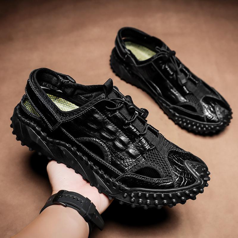Новые летние дышащие дизайнерские туфли ручной работы без застежек на каждый день для мужчин, толстые подошвы, кроссовки с выемками, легкие уличные туфли на плоской подошве