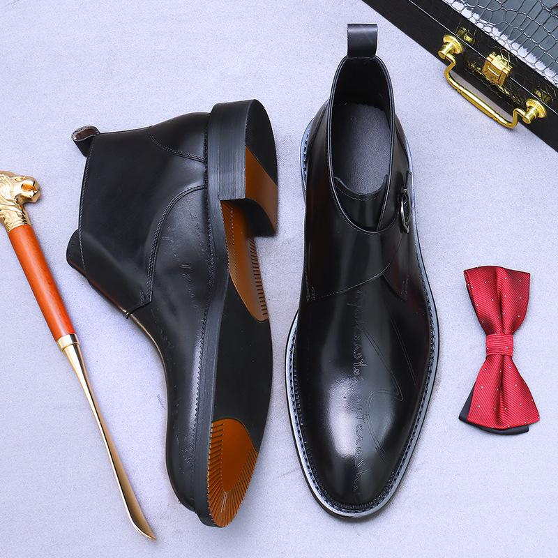 Новые британские ботильоны мужские из натуральной кожи черного кофейного цвета, дышащие, модные, с пряжкой, на ремне, мужские формальные туфли