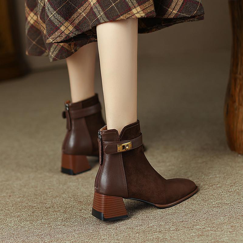 Классические женские ботильоны из коровьей замши, модные лаконичные квадратные носки на толстом каблуке, повседневная обувь для офиса и женщин, осень-зима