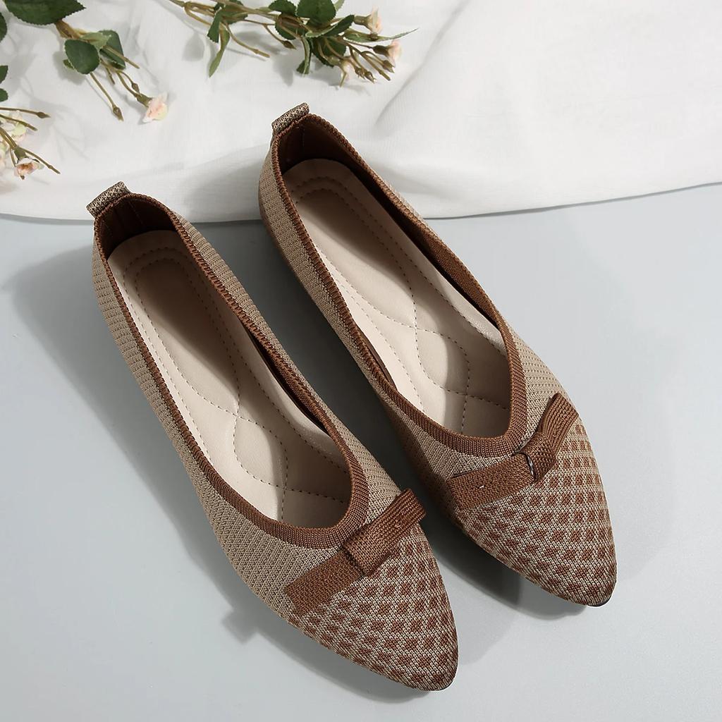 Новые женские трикотажные туфли на плоской подошве, дышащие, удобные, с бантом, повседневные, с острым носком, кроссовки для ходьбы, мокасины — купить товар онлайн с бесплатной доставкой по всему миру!