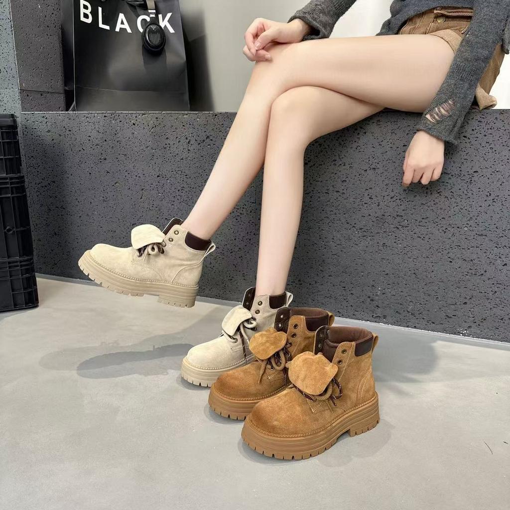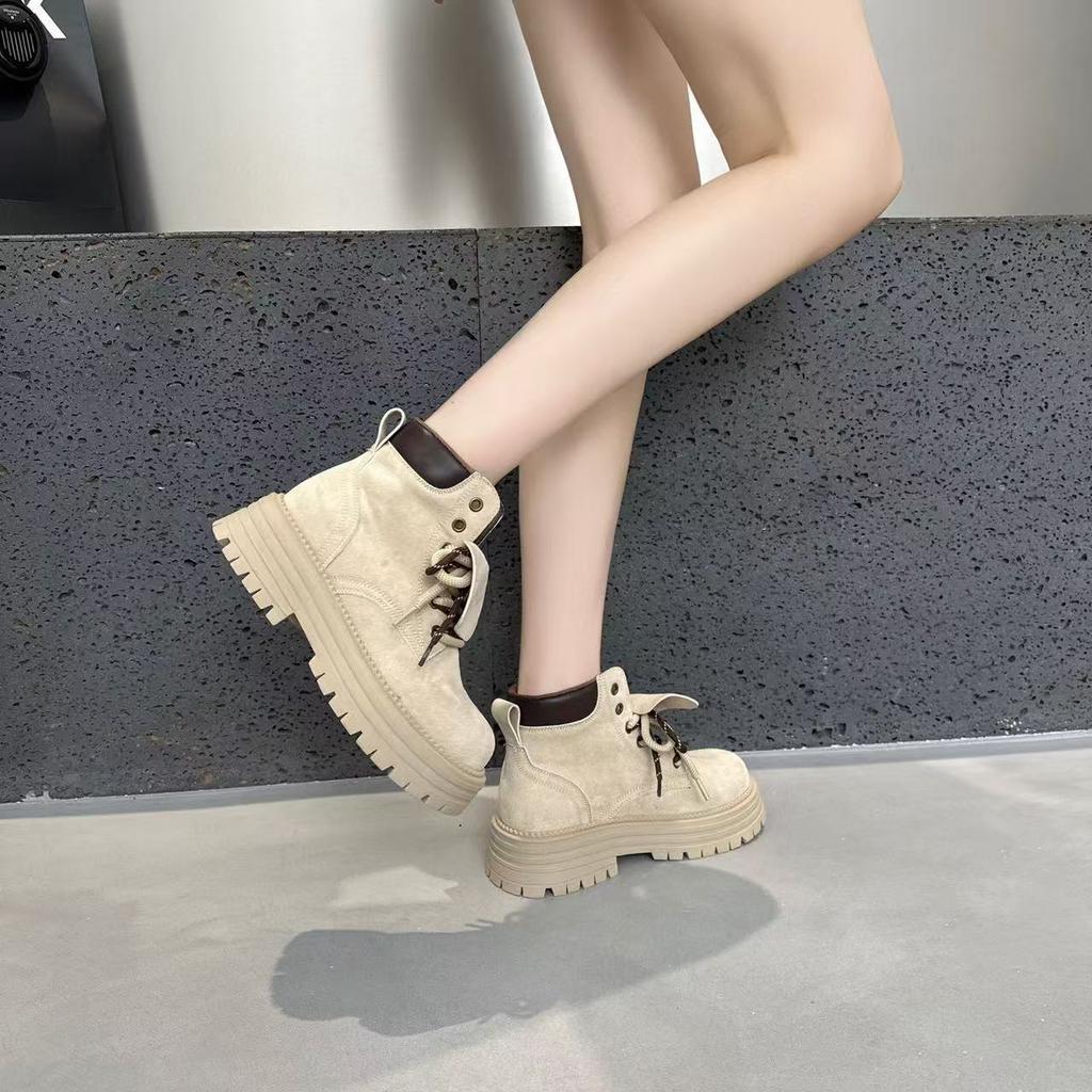 Осенне-зимние дышащие кожаные ретро ботинки Мартин женские с внутренней платформой на толстой подошве рабочие короткие ботинки ботинки цвета ревеня