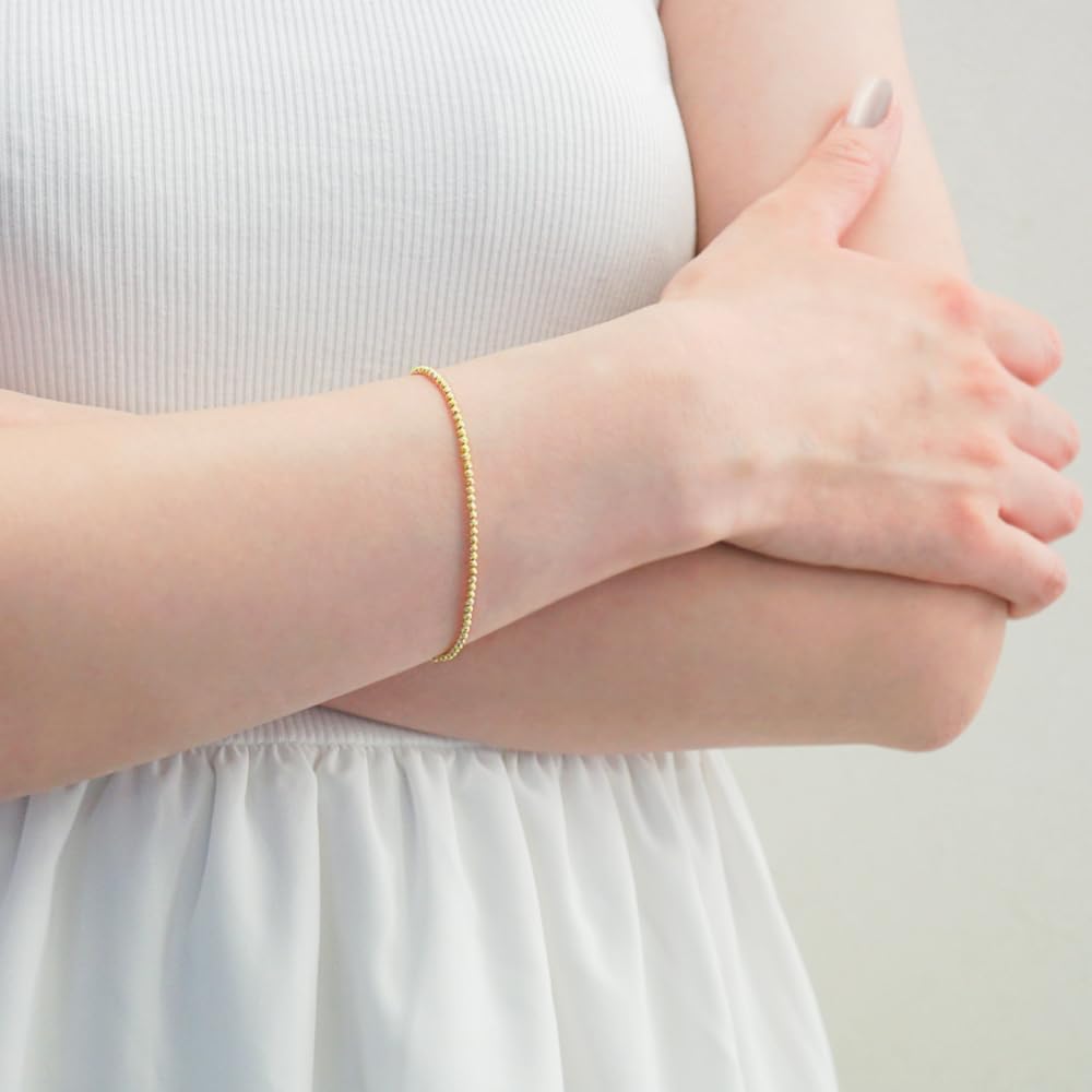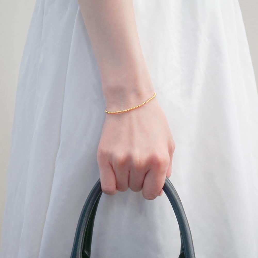K18 Camille Ball Chain 18K Yellow Gold with Slide Adjustable Made in Japan [APRE] Bracelet, 16-18cm, 750, Adjuster, Length,