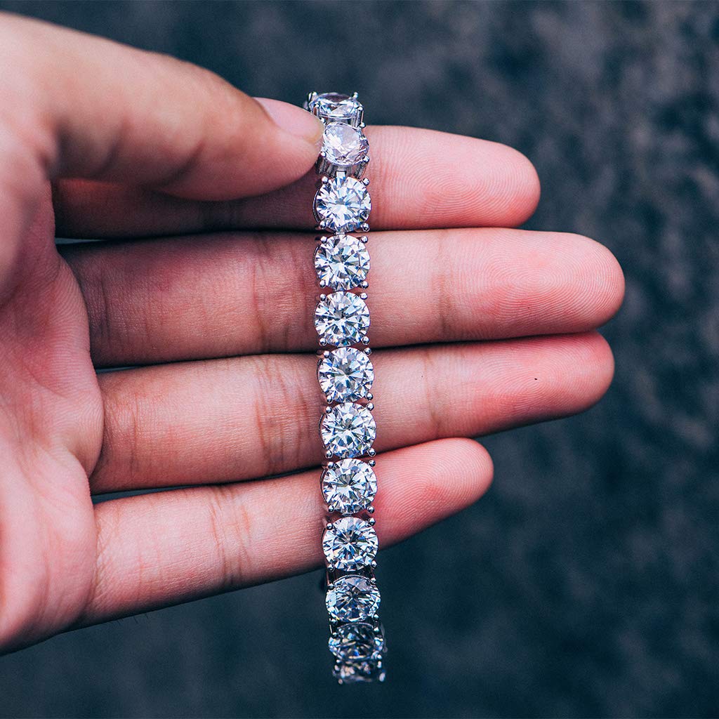 JINAO Hip Hop 14K Diamond Solitaire Cluster Lab Diamond Link Bracelet (Gold)
