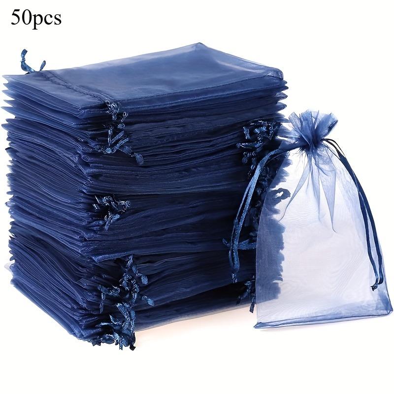50 шт. темно-синих органзовых подарочных мешочков, сетчатые мешочки для ювелирных изделий, свадебные, на день рождения, для вечеринок, мешочки для конфет, мешочки для подарков с кулиской — купить товар онлайн с бесплатной доставкой по всему миру!