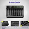 Зарядное устройство для аккумуляторов Ni-MH Ni-Cd AA AAA с ЖК-цифровым дисплеем 1,2 В 8 слотов Аккумуляторные батареи Микро Тип-C Смарт-зарядное устройство для аккумуляторов