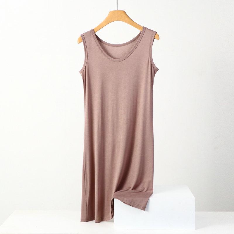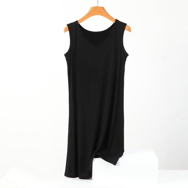 Откройте для себя непринужденную элегантность с этим платьем-майкой средней длины свободного кроя, изготовленным из мягкой и дышащей модальной ткани.. Разработанное для максимального комфорта, это черное платье без рукавов предлагает лестный силуэт, который красиво драпируется на фигурах большого размера.. Идеально подходящий для универсальной укладки, он плавно переходит от повседневных дневных прогулок к непринужденным вечерним мероприятиям, гарантируя, что вы всегда будете выглядеть шикарно и стильно.