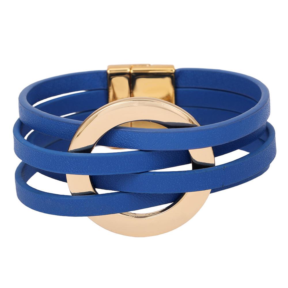 Женский многослойный кожаный браслет в европейском и американском стиле с большим металлическим манжетным кругом.