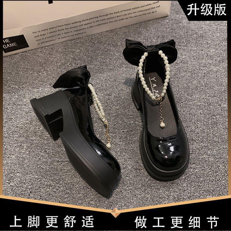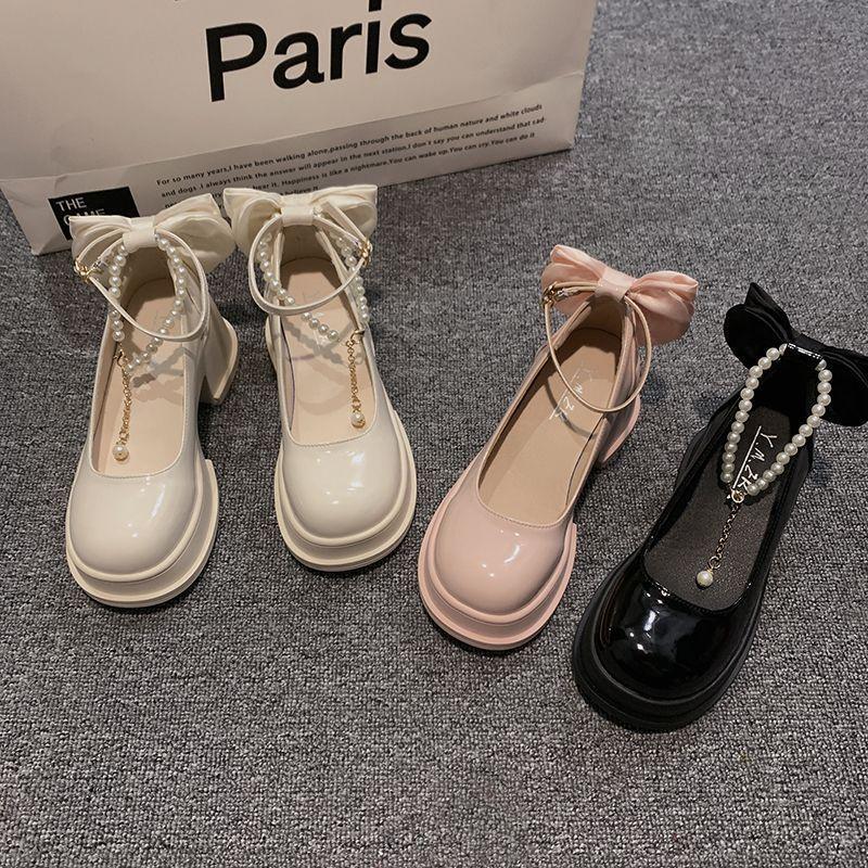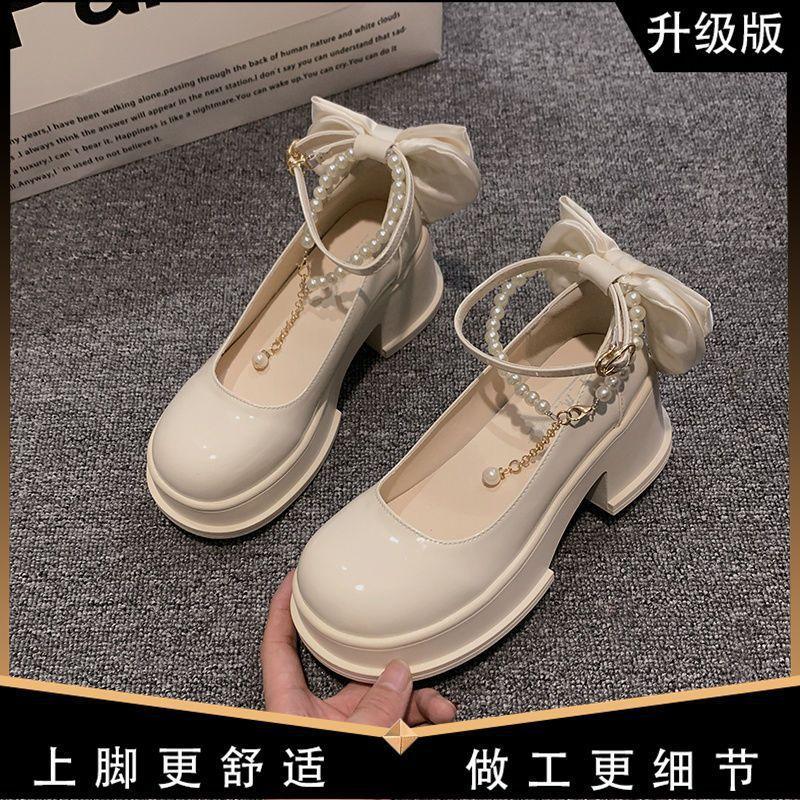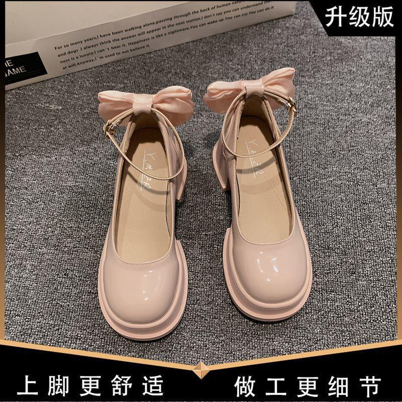 Милые туфли Мэри Джейн с бантиком из маленькой кожи, женские весенние 2025 года, новые на толстой подошве и толстом каблуке, свадебные туфли, туфли для подружки невесты