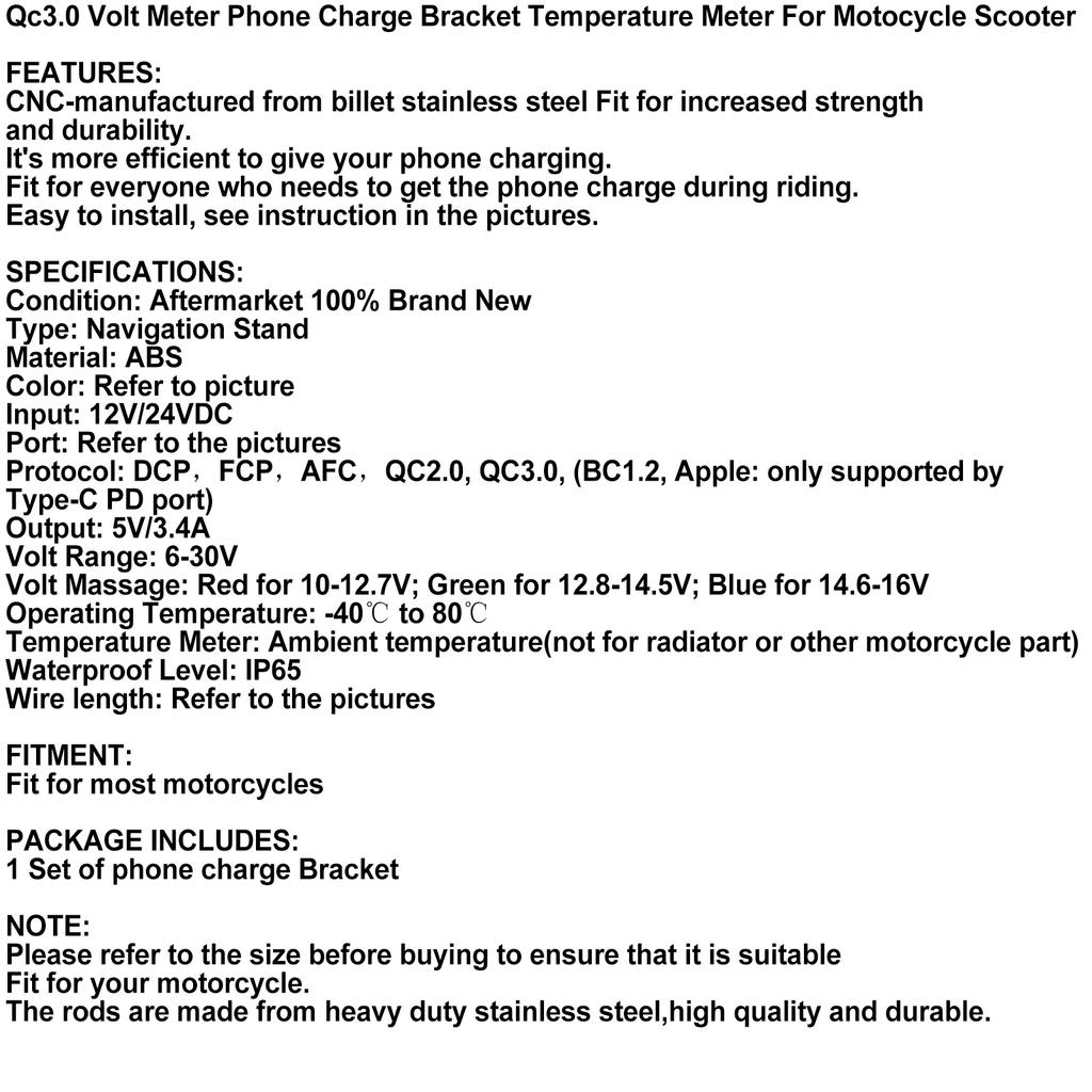 Qc3.0 Volt Meter Phone Charge Bracket Temperature Meter Black A For Moto Scooter