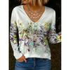 Женские футболки с цветочным графическим принтом, растениями, V-образным вырезом, длинным рукавом, элегантные, модные футболки, обычные топы, женский пуловер, осень-зима