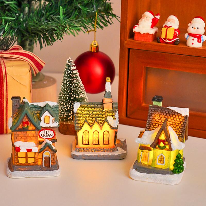1 шт. Светящееся украшение в виде домика, Фестивальное теплое освещение, Декор для дома, Светодиодный снежный покров, Поделка, Настольная фигурка, Статуэтка, Рождество, Романтика