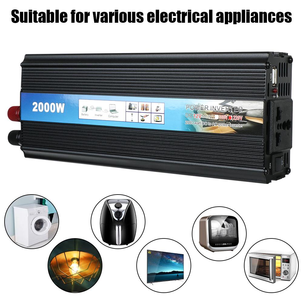 Модифицированный синусоидальный инвертор постоянного тока 12 В в переменный ток 220 В 1000 Вт 2000 Вт, универсальный автомобильный преобразователь напряжения с зарядным устройством USB