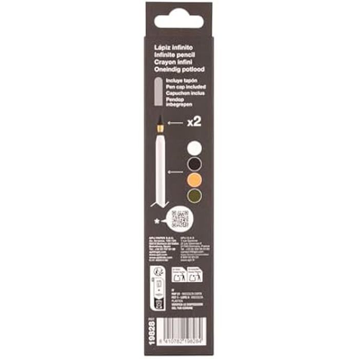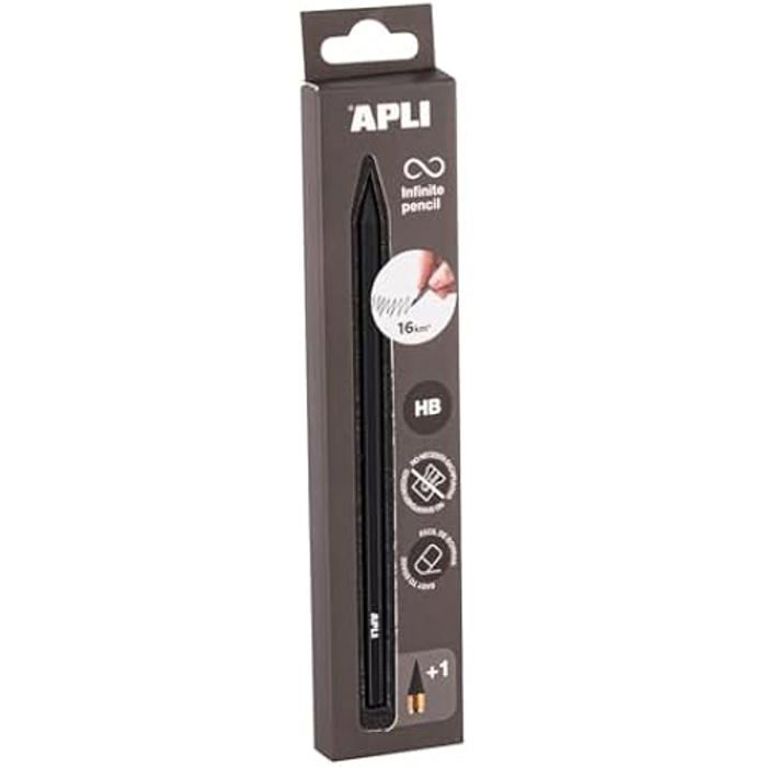 Crayon Infini - APLI - Modèle 19828 - Corps en métal noir - Écriture sans fin - Mine de rechange