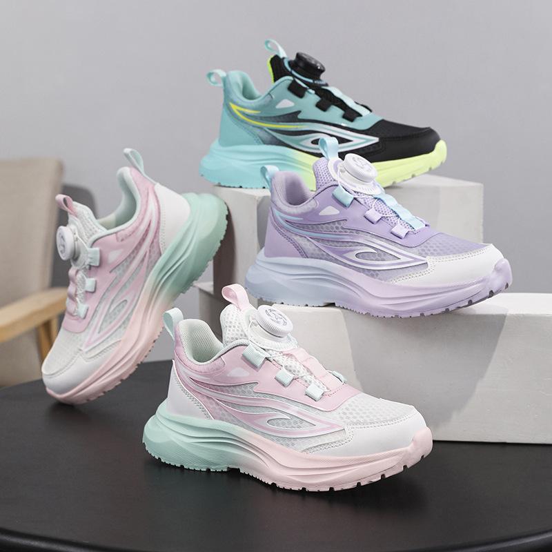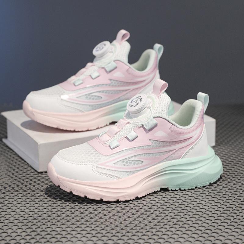 Обувь для девочек Новая сетчатая обувь лето 2025 Повседневная обувь для детей среднего и старшего возраста с вращающейся застежкой Спортивные кроссовки для мальчиков и учеников начальной школы