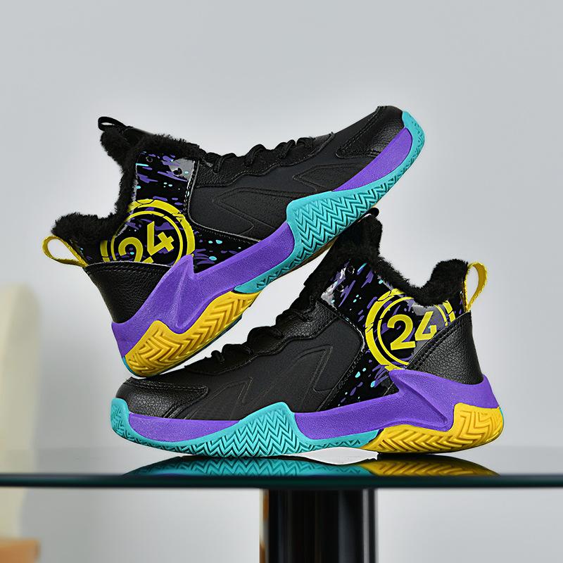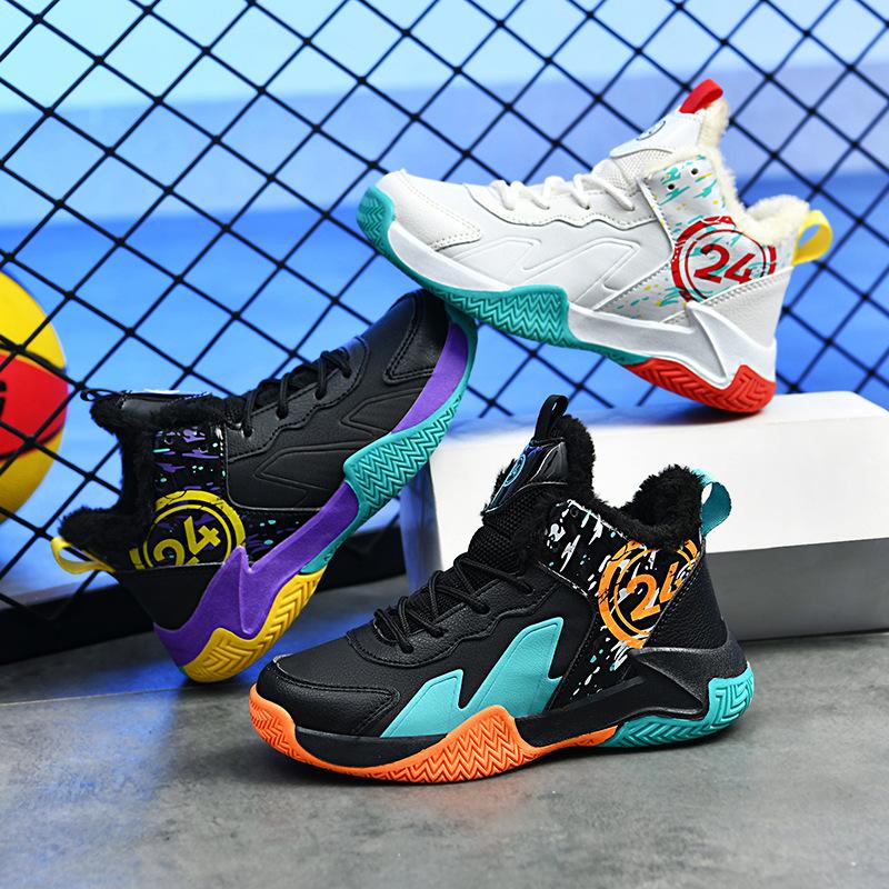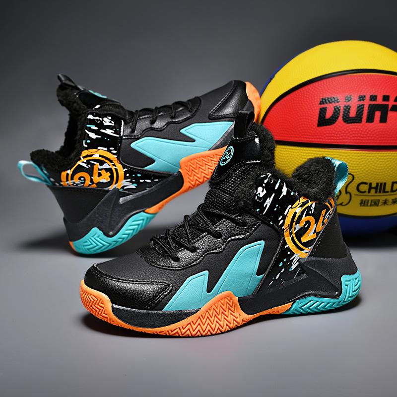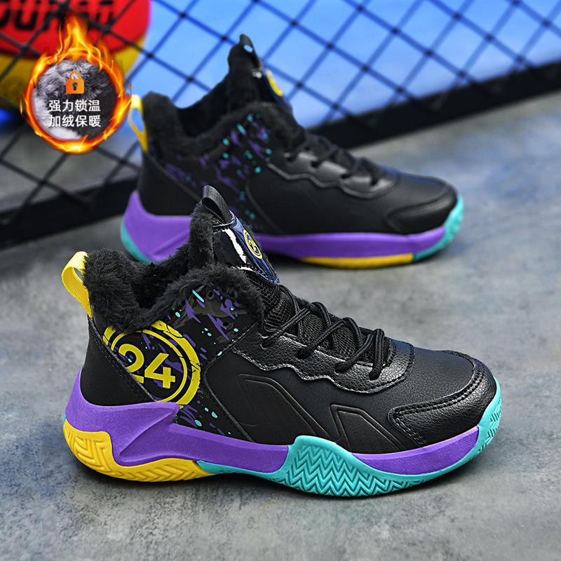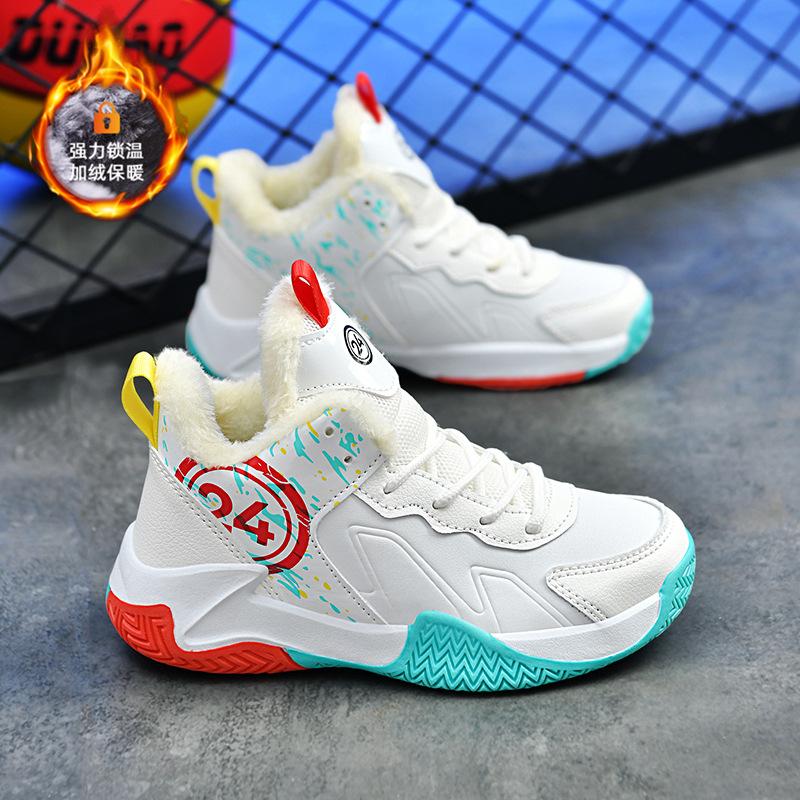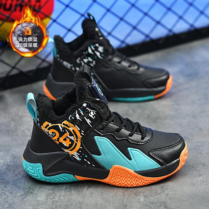 Детские осенне-зимние хлопковые баскетбольные кроссовки для тренировок, спортивная обувь для детей среднего и старшего возраста, нескользящие и износостойкие студенческие кроссовки для мальчиков