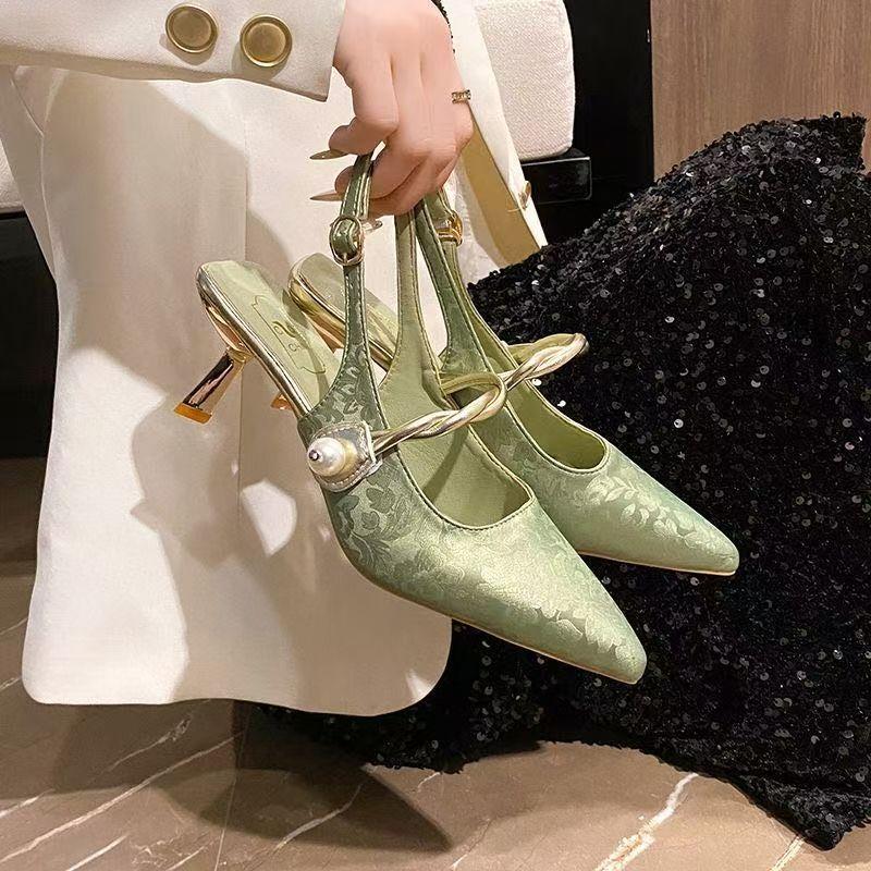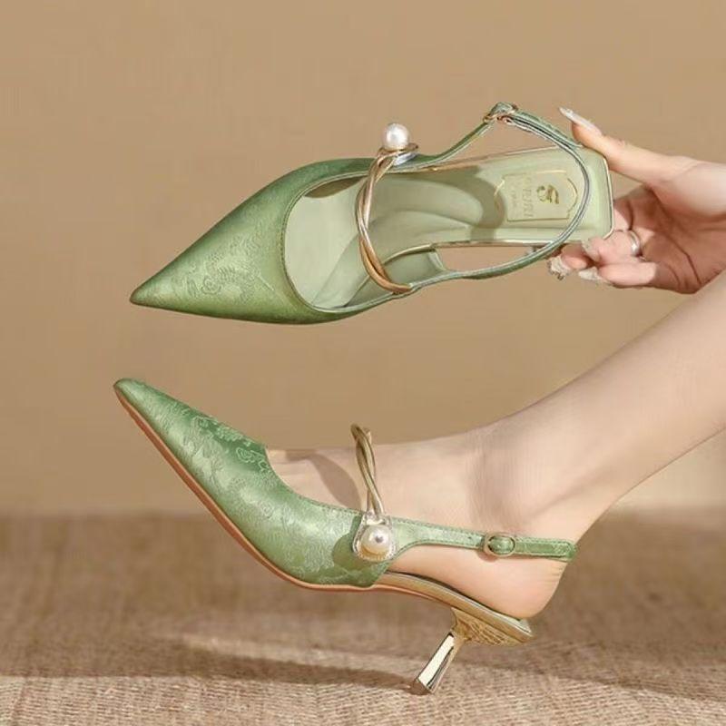 Одно слово с наконечником сумки новый китайский стиль 2025 лето новые босоножки-стилеты модная девушка с ципао на высоких каблуках