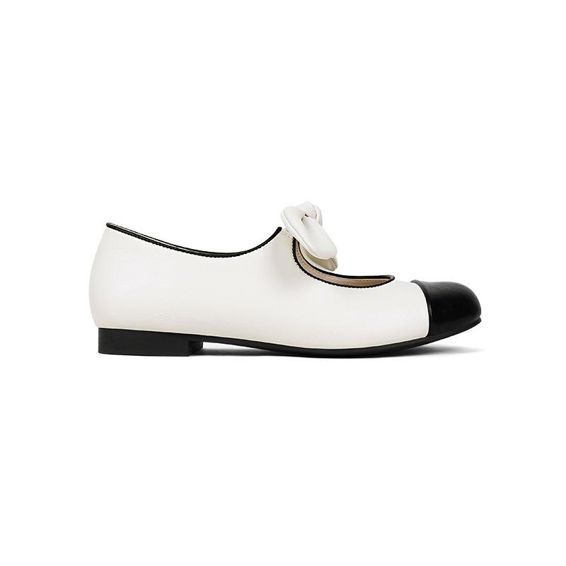 Версия из коровьей кожи~ Туфли Мэри Джейн с круглым носком и кожаным верхом для маленькой феи женские 2025 лето новые на плоской подошве с мелким вырезом одинарные туфли женские