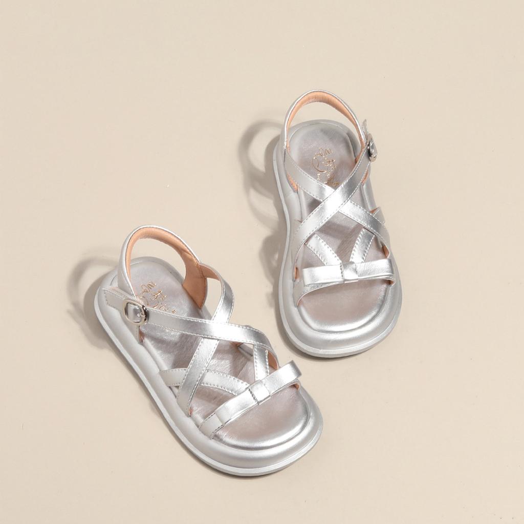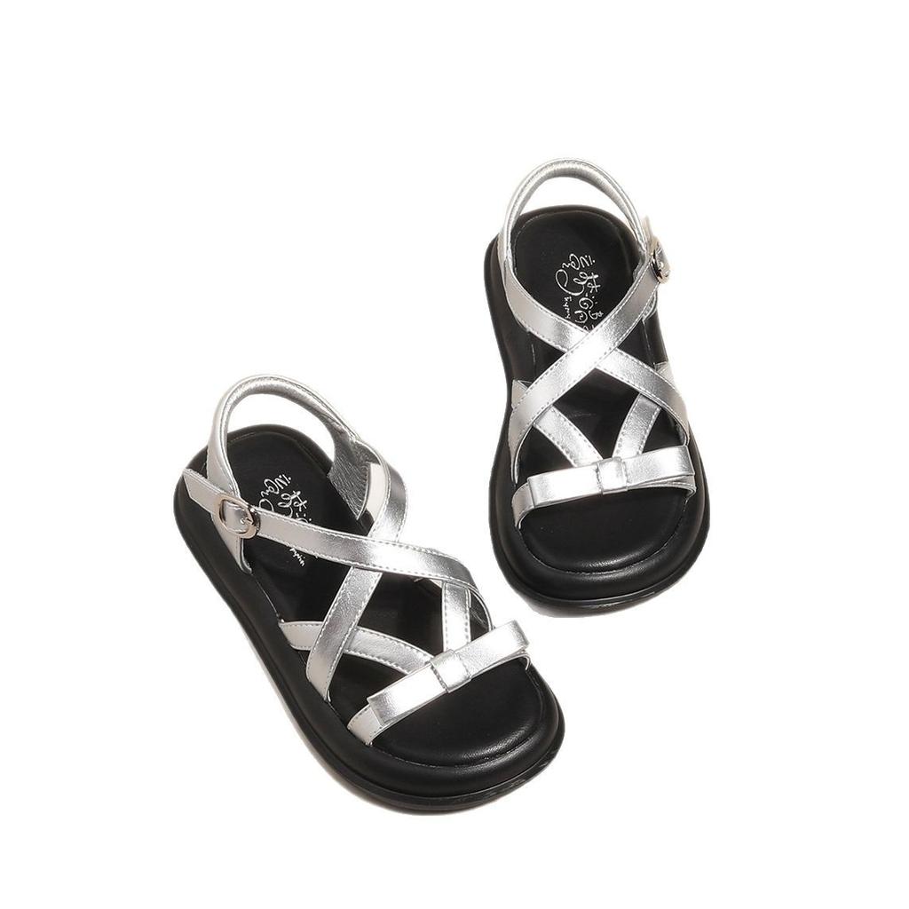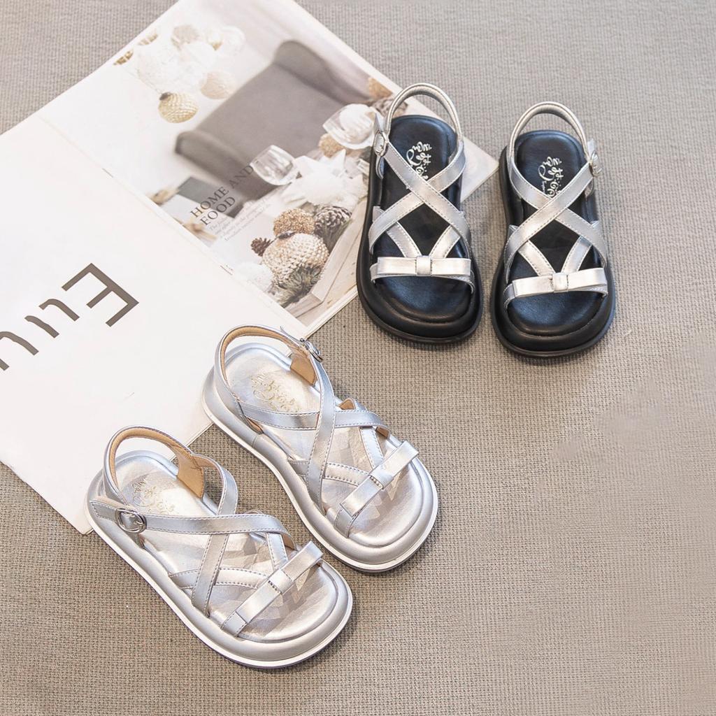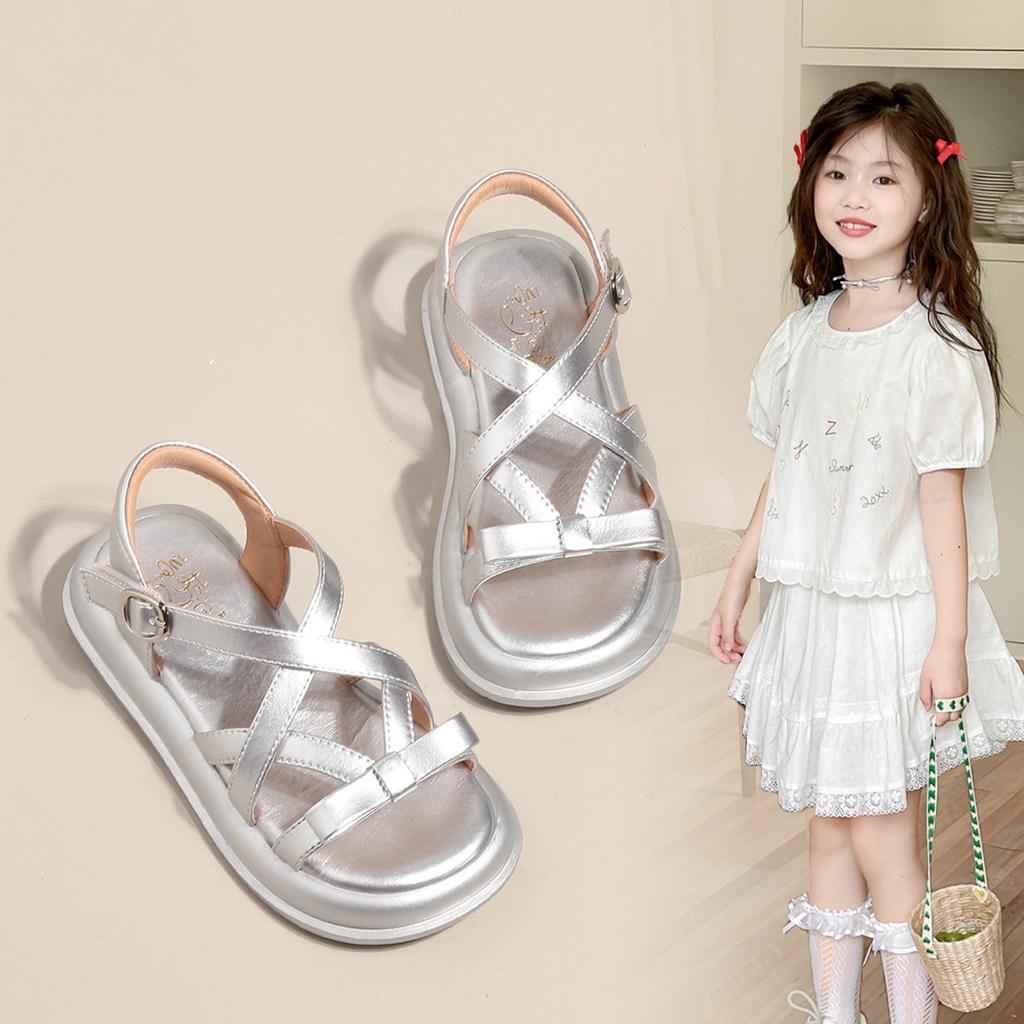 Сандалии для девочек корейская версия туфельки принцессы с открытым носком лето 2025 новая студенческая универсальная пляжная обувь мода