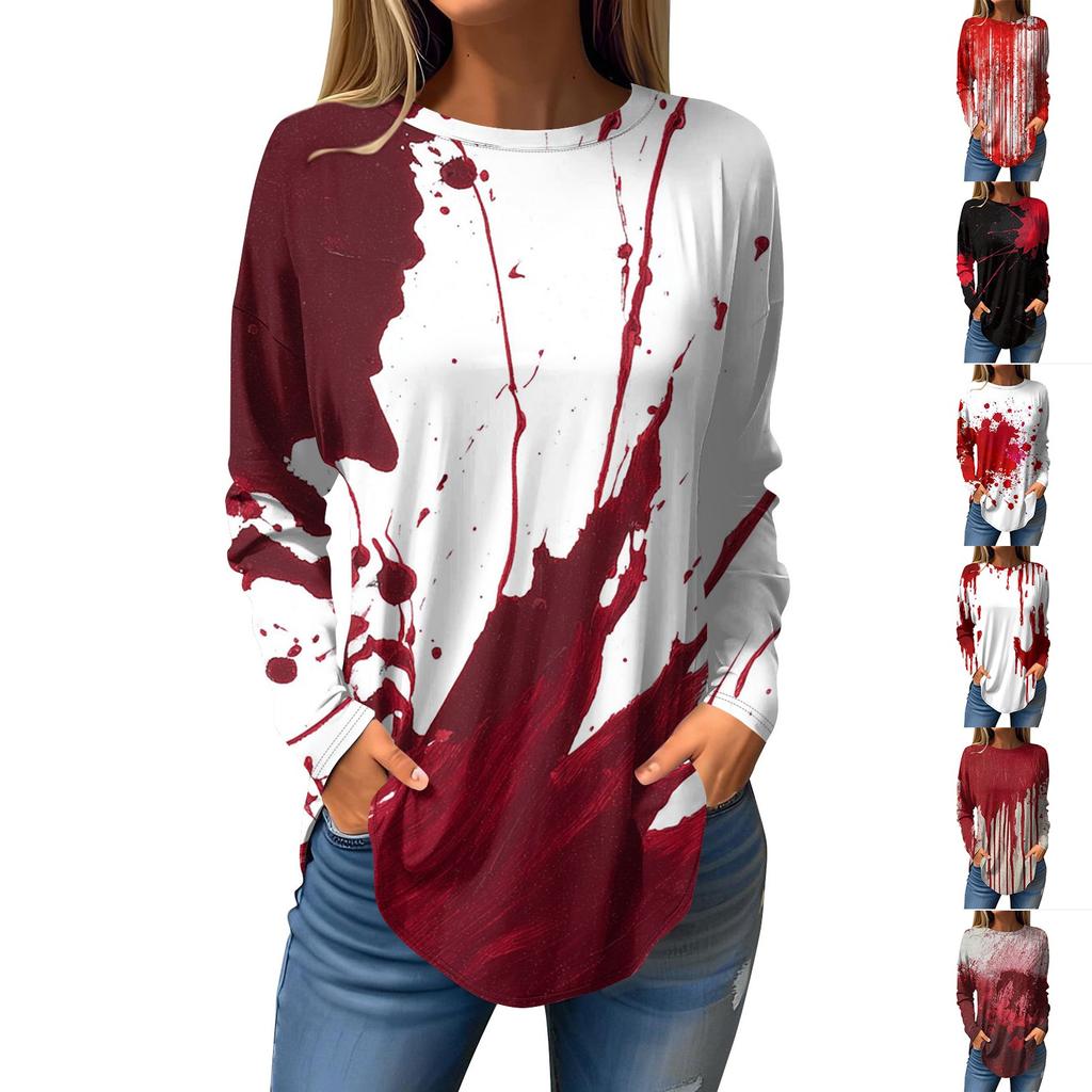 Женская модная свободная футболка с круглым вырезом и принтом на Хэллоуин, с длинным рукавом, топ-пуловер