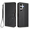 Чехол-кошелек для Samsung Galaxy S25 Ultra с ремешком на запястье, с тиснением в виде кошки и любовного сердца, кожаный чехол для телефона