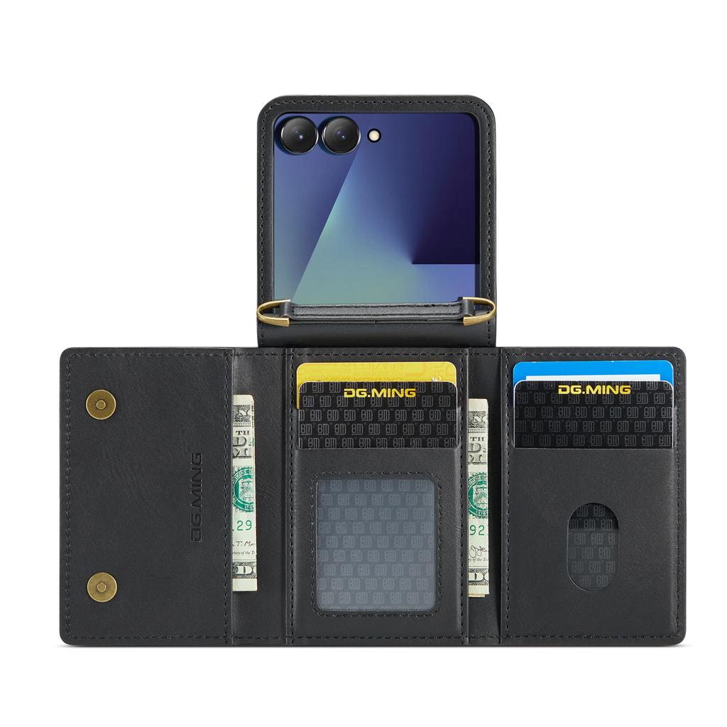 DG.MING M5 Series for Samsung Galaxy Z Flip7 5G Case RFID Blocking Card Slots Leather+PC Phone Cover