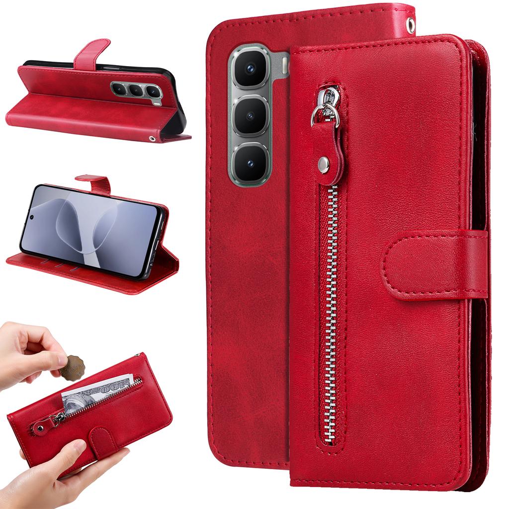 For Infinix Hot 60 Pro 4G PU Leather Cases with Zipper Pocket Wallet Phone Cover Stand