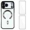 For iPhone 17 Pro Magnetic Case WANLONFENG Electroplated TPU Cover with Lens Film+2Pcs Tempered Glass