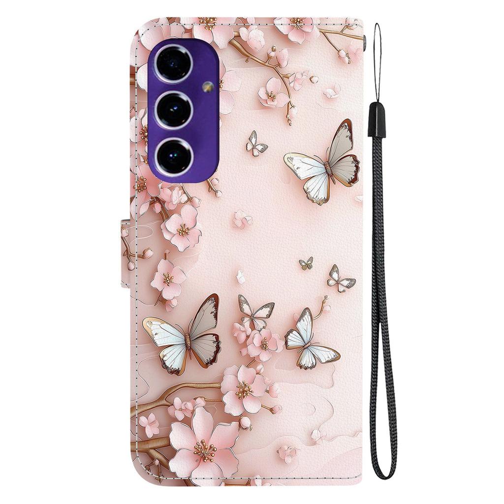 Чехол-портмоне для Samsung Galaxy S24 FE, кожаный, с принтом, подставкой и ремешком.
