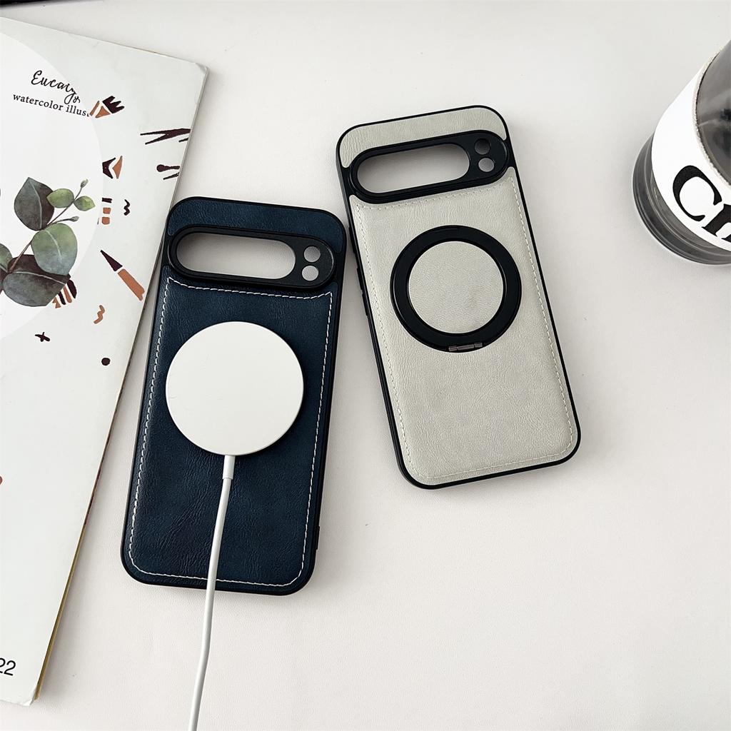 Для Google Pixel 9 Pro XL Магнитный чехол Текстура телячьей кожи ПУ+ТПУ+ПК Подставка Чехол для телефона