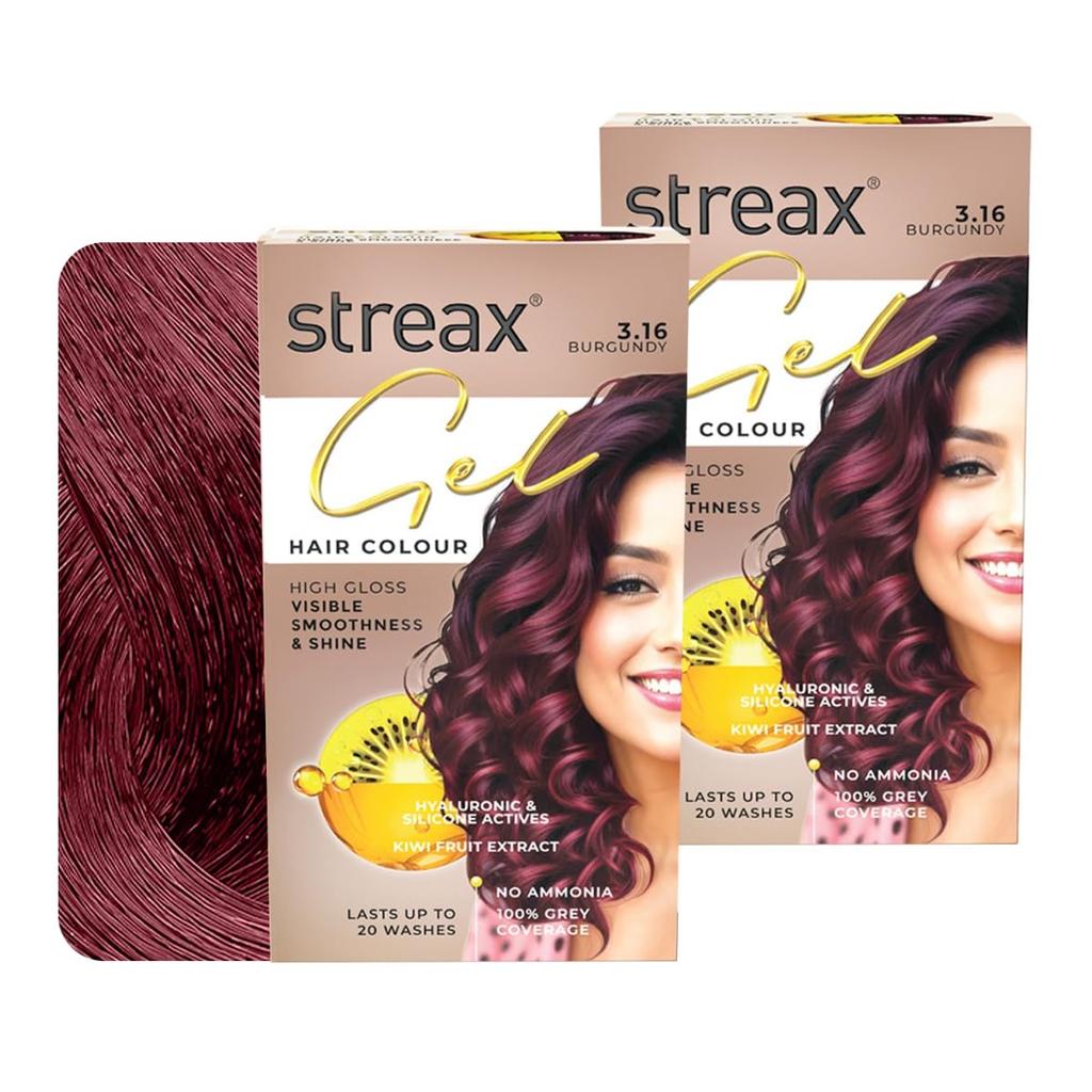 Streax Гель-краска для волос Бургунди 3.16 150 мл Упаковка из 2 штук Стойкое покрытие седины