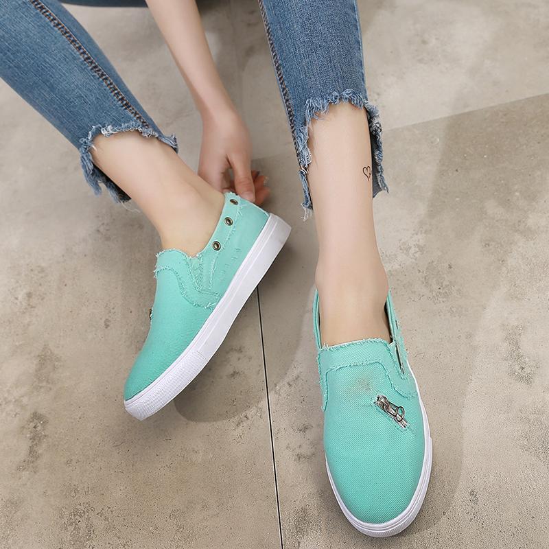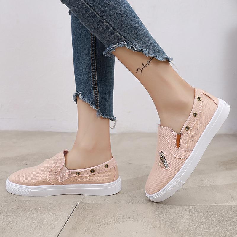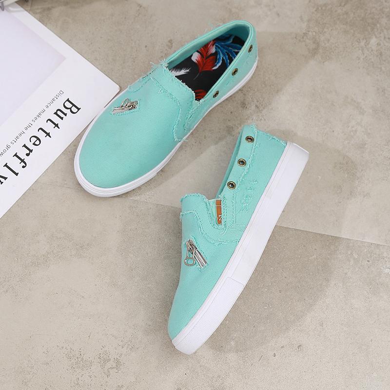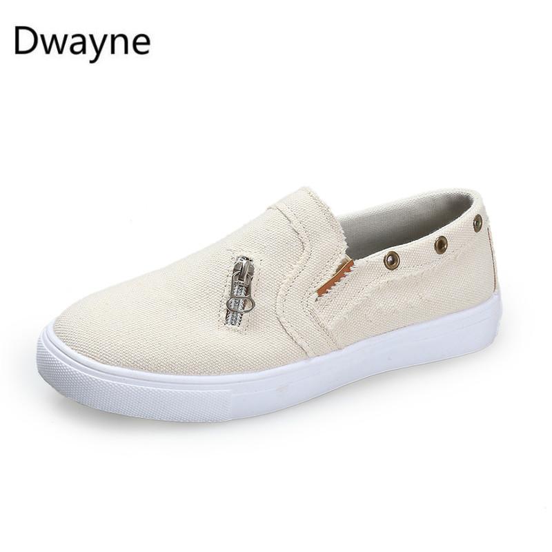 Dwayne Большие размеры Женские одинарные туфли из денима на молнии на плоской подошве Женские ленивые повседневные туфли Лоферы женские вулканизированные 2019 Новинка