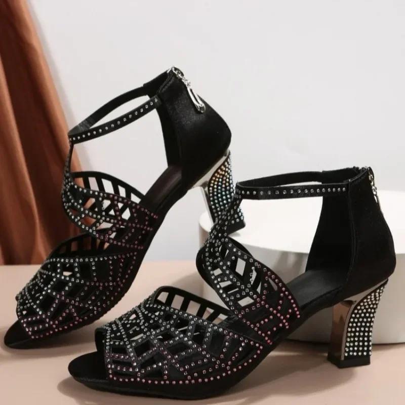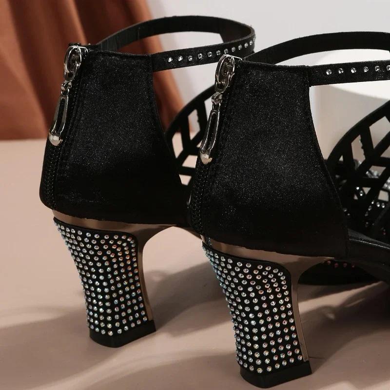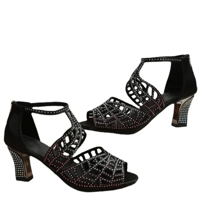 Женские блестящие туфли на высоком каблуке со стразами, сексуальные полые туфли-лодочки с открытой пяткой, черные босоножки с кристаллами, открытый носок, туфли-шпильки, повседневная обувь для вечернего платья