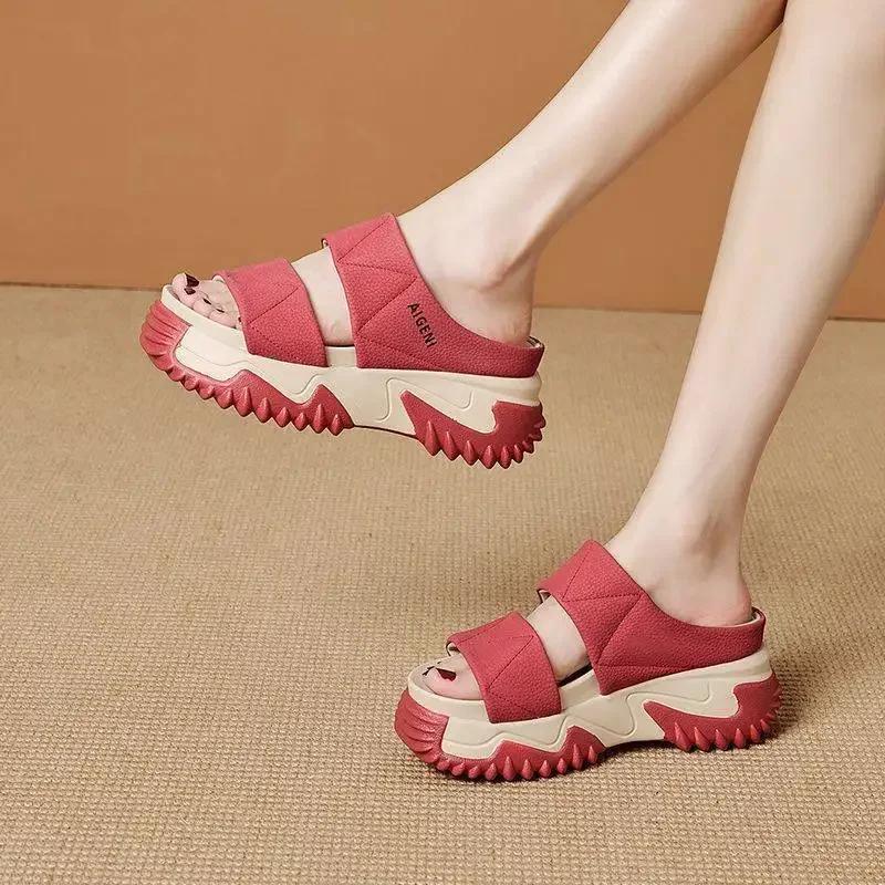 Мягкие кожаные тапочки, женские новые домашние и уличные модные тапочки на толстой подошве, трендовые противоскользящие туфли на плоской подошве, износостойкие сабо