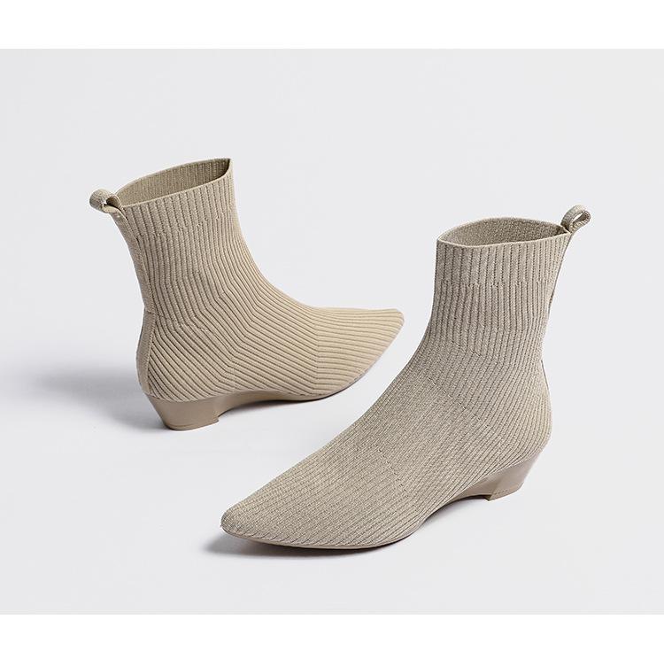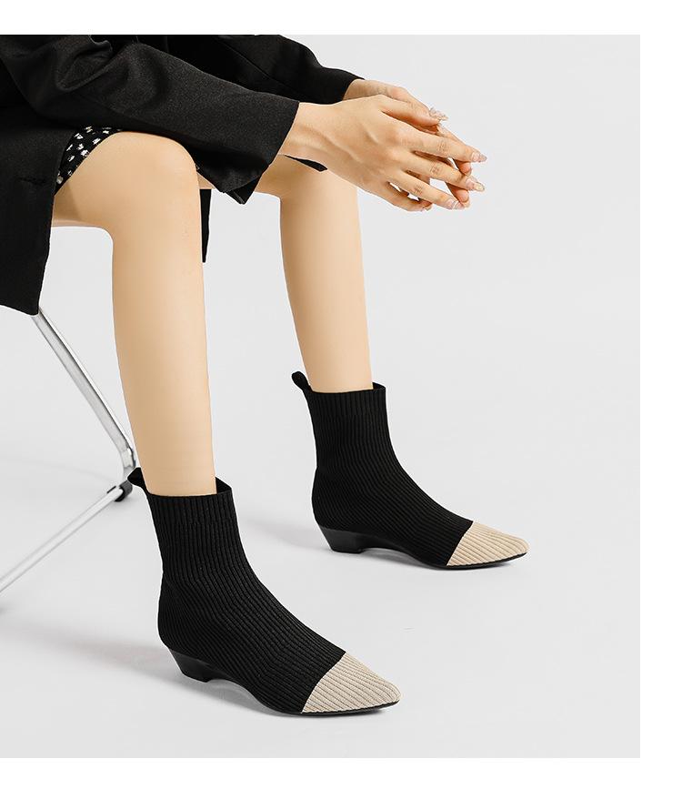 Весенние и осенние женские ботильоны, модные короткие ботинки с острым носком, большие размеры, нескользящая резиновая подошва, вязаные носки, сапоги
