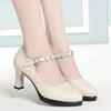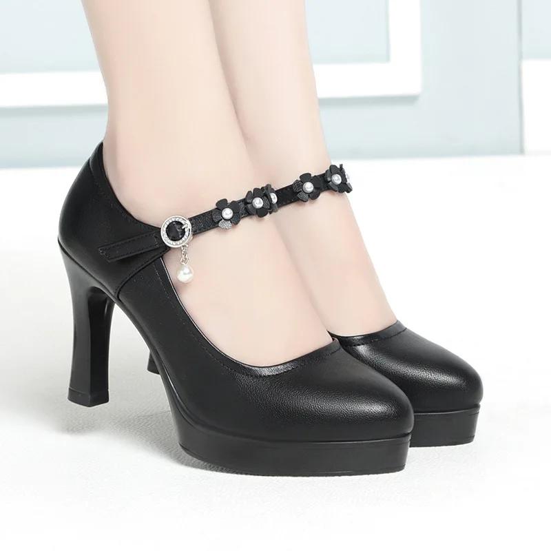 Весна и осень женские туфли на высоком каблуке 2025 новые модные туфли с пряжкой из цельной черной искусственной кожи на платформе удобные туфли на толстом каблуке для мам