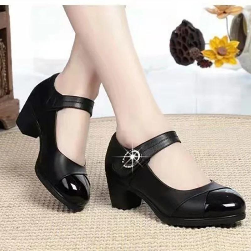2024 Новые женские туфли на высоком каблуке, модные классические удобные туфли для мам с круглым носком и пряжкой на ремешке, женские туфли-лодочки для вечеринок на лето и весну