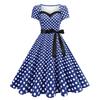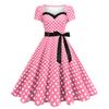 Женское модное повседневное вечернее платье в стиле кэжуал, с коротким рукавом, расклешенное, в горошек, в стиле ретро
