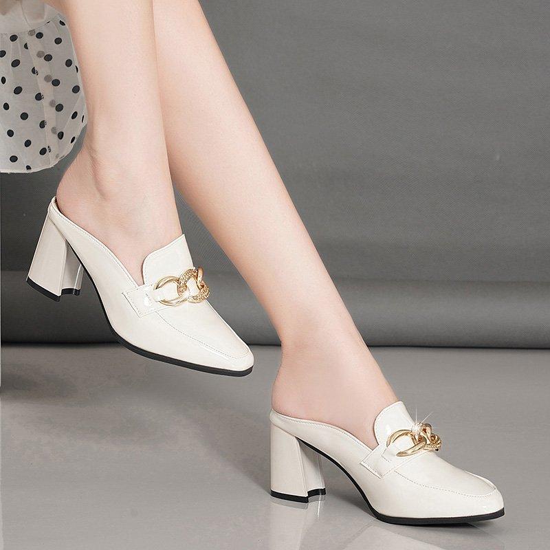 Женские тапочки, уличные тапочки, мюли, модные летние мягкие элегантные туфли на среднем каблуке, роскошные PU-резиновые пряжки, осенние женские туфли с носком