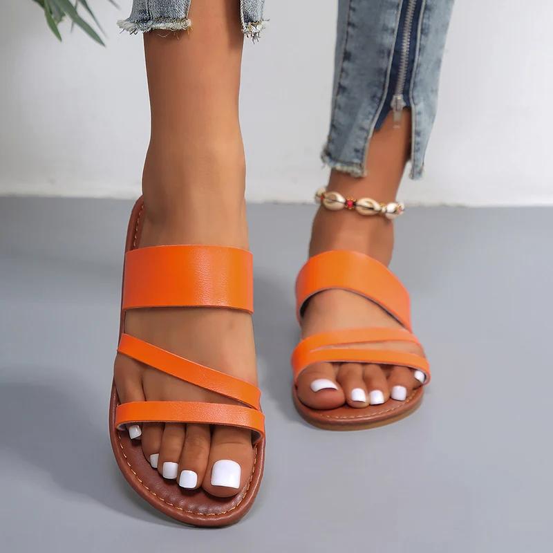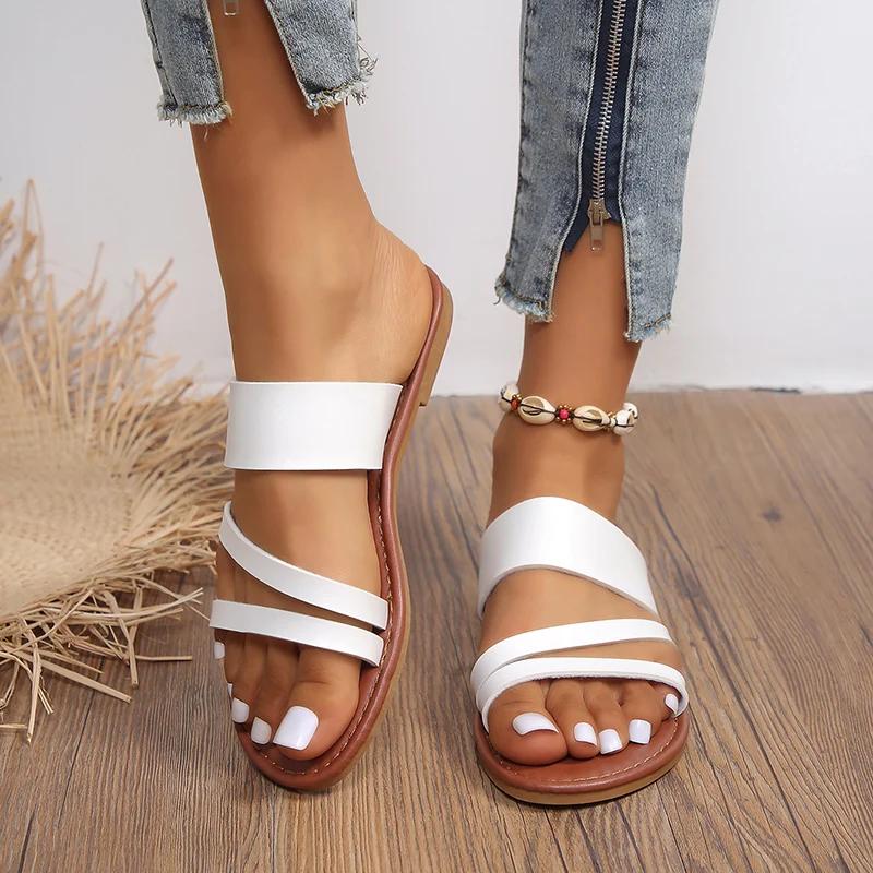 Летние сандалии на плоской подошве для женщин 2024 года, новые повседневные пляжные тапочки, модные шлепанцы, женские сандалии-гладиаторы без застежек 35-43