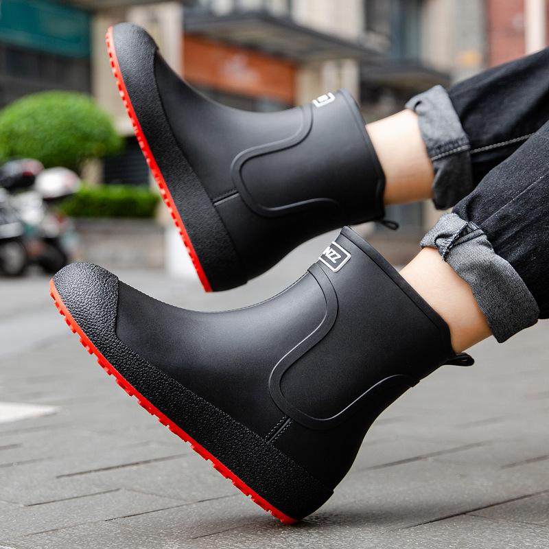 Модные мужские резиновые сапоги Slip-on Rain Shoes 39, водонепроницаемые ботинки на платформе, нескользящие резиновые сапоги для отдыха на природе, мужские рабочие галоши